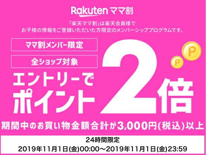 ↓ママ割メンバーエントリーで全ショップポイント2倍