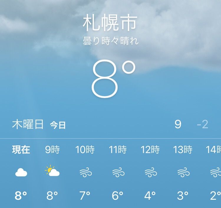 札幌、今日の午後から本格的な寒さが始まるとの予報。
