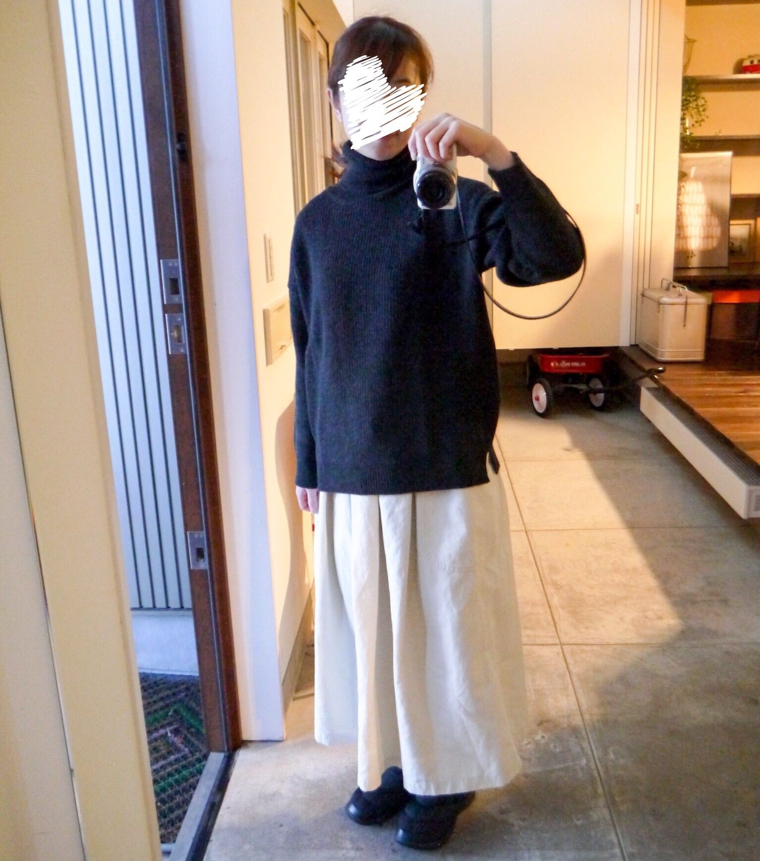 タートルネックのニットを着ると