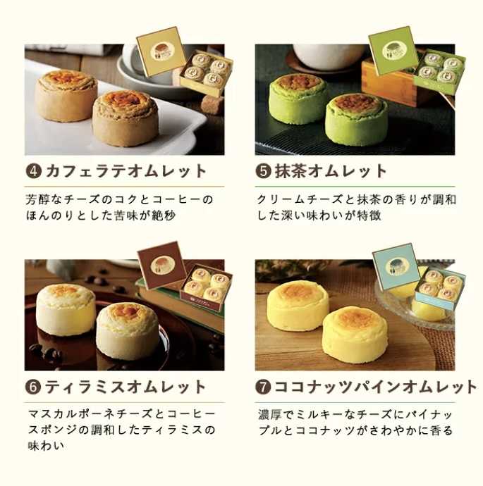 カフェラテ、抹茶、ティラミス、ココナッツパイン