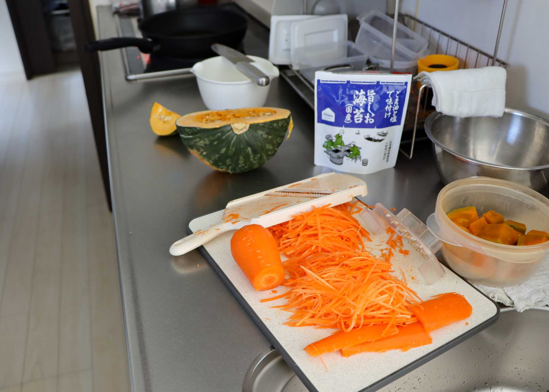 ニンジンはまとめてスライサーかけて
