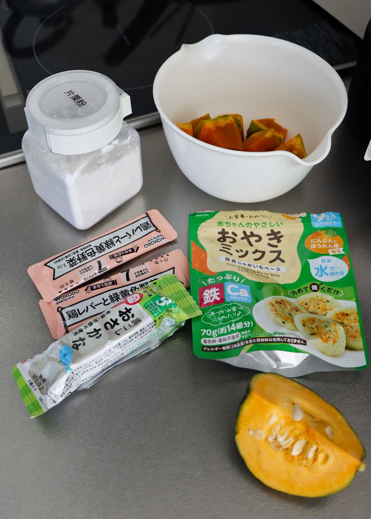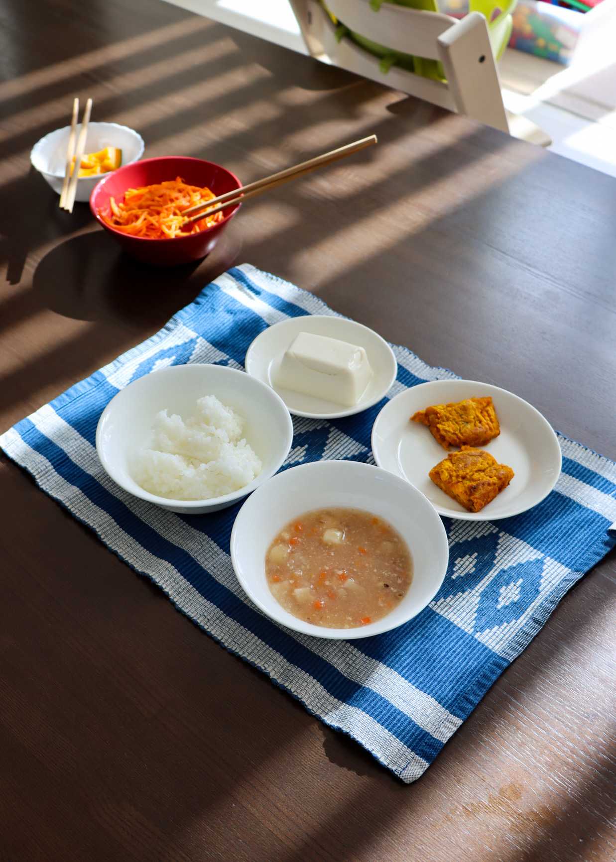 ご飯にベビーフードのおかず、豆腐、