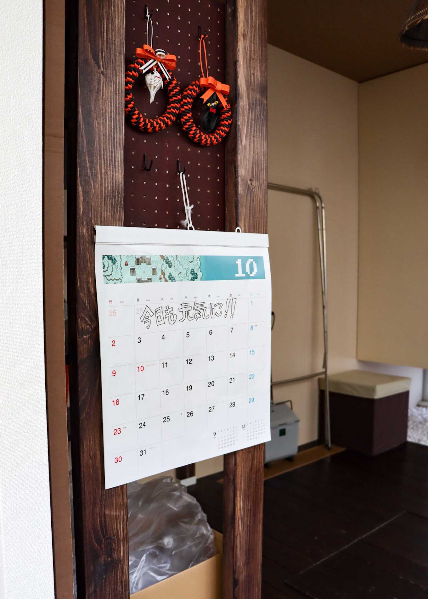 玄関入ってすぐ見えるところに飾っています。