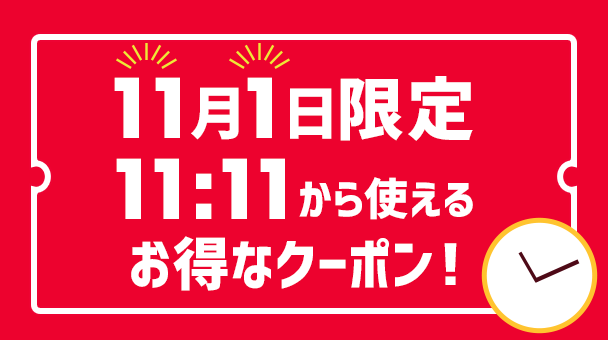 ↓午前11:11、午後1:11、午後11:11から使えるクーポン