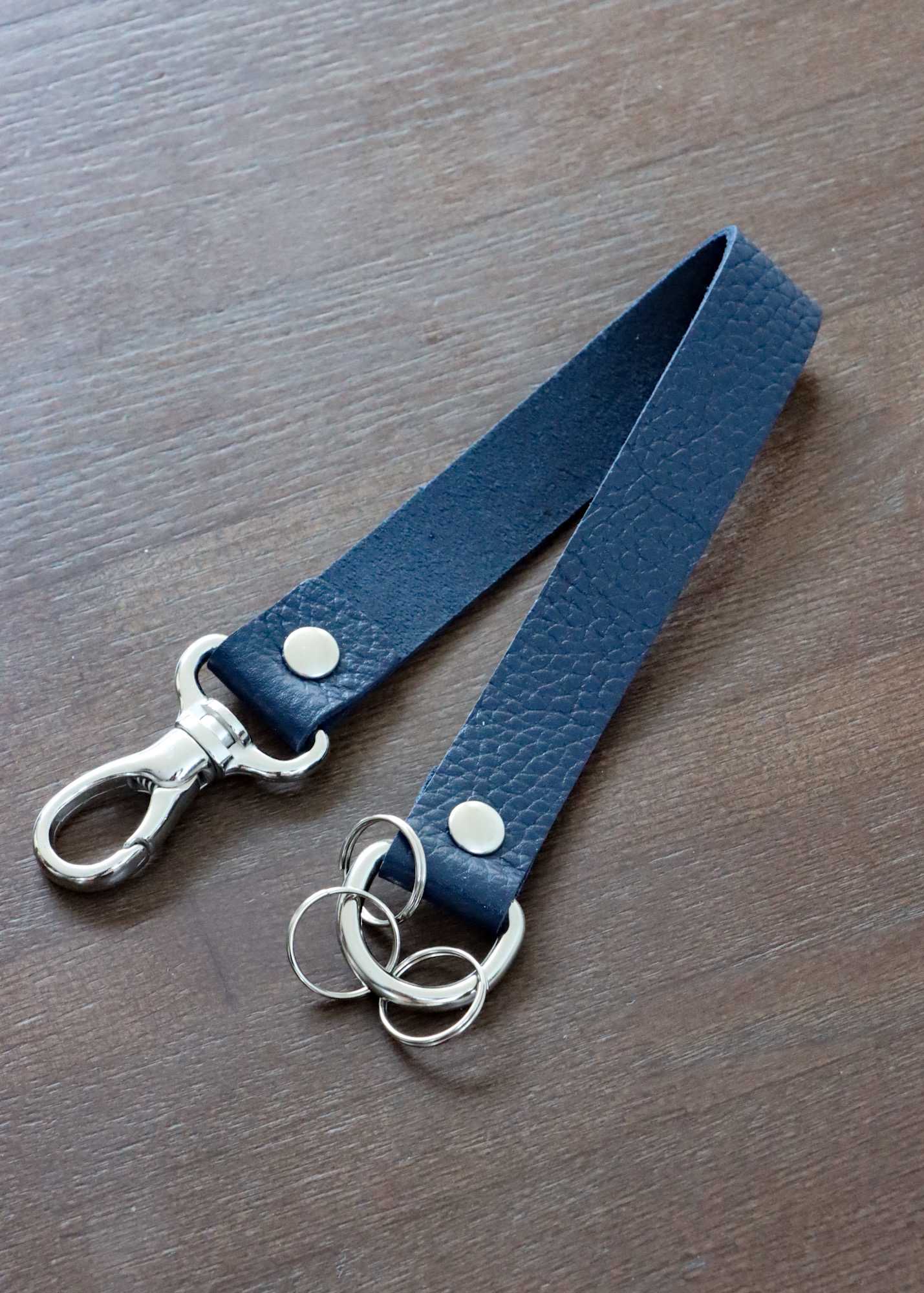 本革の質感が素敵なキーリングでして、