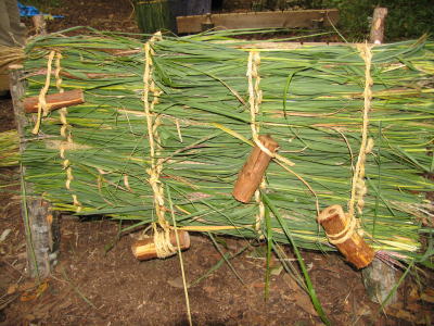 地元のSさんより炭俵の作り方を教わる。Sさんは二十歳頃から10年にわたり炭焼きをされていた。30年ぶりに俵を編んだとおっしゃるが、手元は正確である。まだ青々とした萱で試作。簡易な織り機を板でこしらえ、荒縄と杉の枝で編んでいく。それを筒状にして小枝で底を作る。そして炭を詰めていく。約5キロの炭が入った。Sさんが仕事をしていた頃は、4貫目のこの大きさの俵を10個牛の背に載せ、自分で2個を担ぎ、山から里へ運んだと言う。すぐに売れてしまうので、里でゆっくりはしていられなかったとのこと。俵編みは冬場の仕事であった。今年の冬は3人で俵編みに勤しむつもりである。