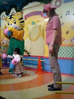 今日は久しぶりに会うお友達、speedyちゃんと隊長くんに誘われて近くのショッピングモール内にある「しましまタウン」へ行ってきました~speedyちゃんのお友達の親子もお誘いしてもらって3組で遊びましたspeedyちゃんのお友達も隊長くんと同じ月齢の男の子で、2ヶ月違いですが私と同じく母乳育児と、しまじろうを愛しているということで共通点もあり、会わせてくれて嬉しかったでーすまずは自然食レストランでランチこちらはオープンしたばかりのお店。いかにも健康的な、でもおしゃれなお料理でみんなして美肌定食を食べました二人ともお子様達のために かわいいお子様ランチをたのんでいたのだけどかわいい顔の形のケチャップライスで、いろいろ野菜も盛り付けてあって栄養満点で安心して食べさせられそうでした~なぎ~もたくさん食べるようになったら注文してあげるからねっ予想通り全然食べてくれなかったから、取り分けで十分でした。それでも、あげるのに抵抗のない自然食だから、いいよね~いよいよ 「しましまタウン」小さなお店や、小さな家があって、子供の目線で遊べるとっても楽しい場所でした!ボールプールやステージもあるし、時間ごとにショーがあったりと盛りだくさんで時間がたつのが早かった~みんな子供をおいかけまわすのに必死で、なかなか3人が集まらないのでも、それぞれに楽しめて本当に良かったな しまじろうと踊るなぎ~ ステージで真ん中を占領していました「隊長くん、これ いくら?」 二人で仲良くレジで遊んでいました新しいお友達と。 こんなところでテレビを見て、立ち止まる二人 せっかく3人が集まって、貴重なシーンだ!ってみんなでカメラを向けたのに私は、間違ってカメラをビデオモードにしていて直している間に、バラバラになってしまったのでした~ 新しくお友達ができたことも嬉しいし、とっても楽しい一日でした。また遊ぼうね