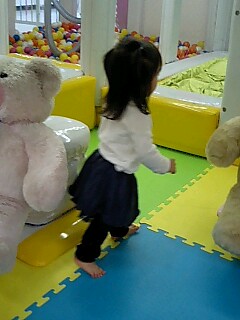 何日か前に更新しようとしたら、ちょっとした不注意で全部消えてしまいました。今までにも何度かこういうことあったんだけど、せっかく入力したのに、消えちゃうと思いっきり力が抜けますもともと面倒と思ってしまうこともあったので、2週間に1回ぐらいの更新にしようと思ってます。それなら、何とか続けていけそう。。。。何この後ろ姿ってかんじですが、この前ダイエーのキッズスペースで撮ったものです。そんなに広くないけれど、1時間500円だし、20分に一回小さい汽車が走ったり帰りに風船とお菓子をくれるので、かなりお得!とっても楽しそうでした~ この2週間で、大事件がありました。 私、妊娠していました卒乳してから生理も2回しかきていなかったので、なんとなく遅れているなあぐらいにしか思わなかったのですが、あまりにも遅れていたので一応検査薬で調べてみたら、、、陽性。先週産婦人科に行ったら、7週目でした周期が遅いほうなのか、思ったよりも育っていませんでした。予定では6月頃に出来て、2月に(なぎ~と同じ頃)産みたかったのですが少し早めに、コウノトリがやってきてくれたようですなぎ~はお姉さん。優しいお姉さんになってくれるといいなあツワリは楽な方みたいで、少し気持ち悪いだけで食事には影響していません。ただ眠気がものすごくて、いつも眠い。だるいって感じですなぎ~の時には働いていたから、気持ち悪さと、夏バテで2キロやせたりしていたけど、今回は痩せそうにありません。まだお腹がでる時期じゃないだろうに、ジーパンがきつくなってきましたこれから忘れかけた妊婦生活。どうなることでしょう