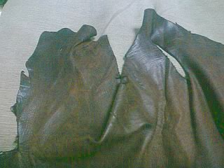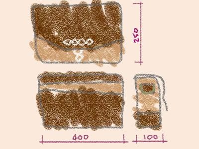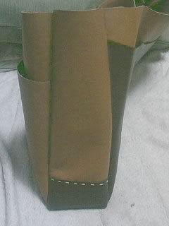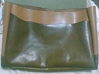 このバッグは底に使った焦茶革の余りでフラップを作り