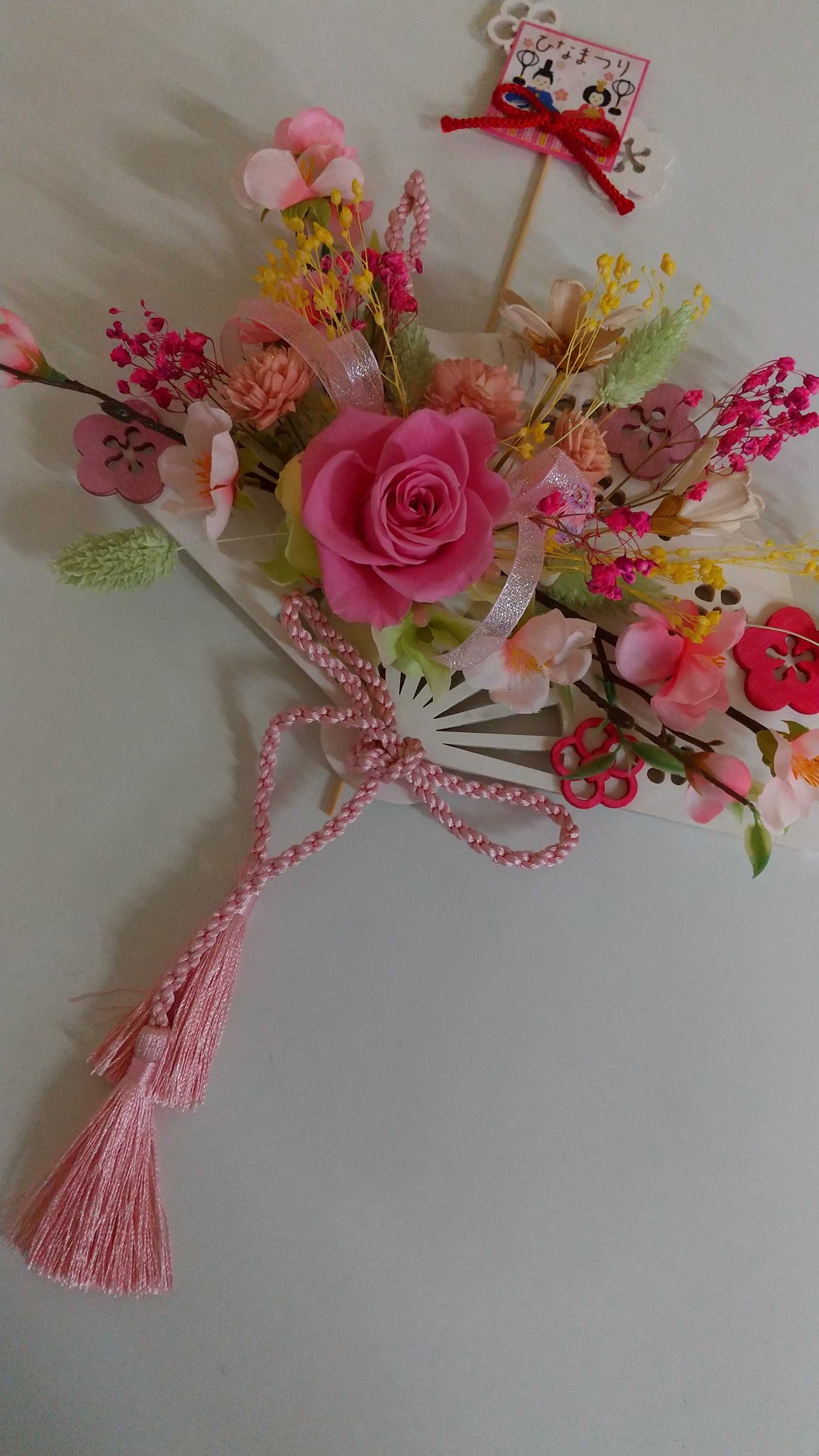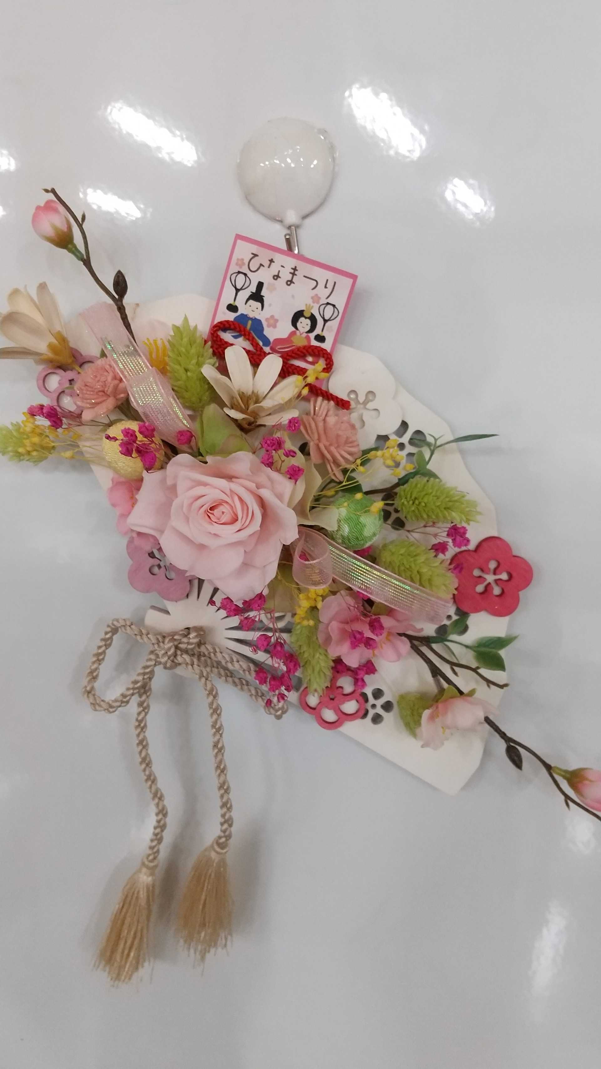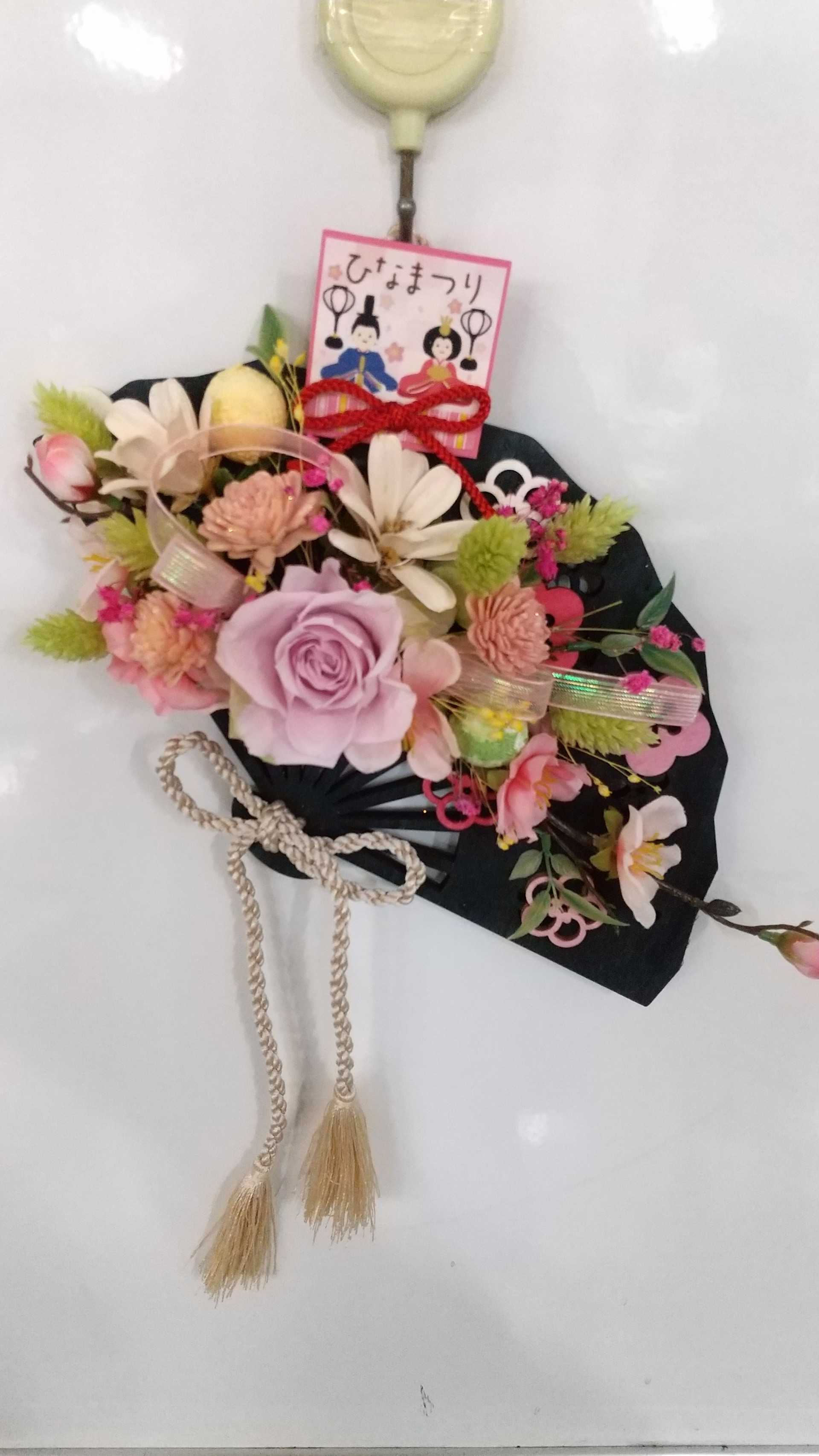 「ひな祭り🎎アレンジ」の講習会に参加して、扇型の素敵なアレンジを作りました🎵