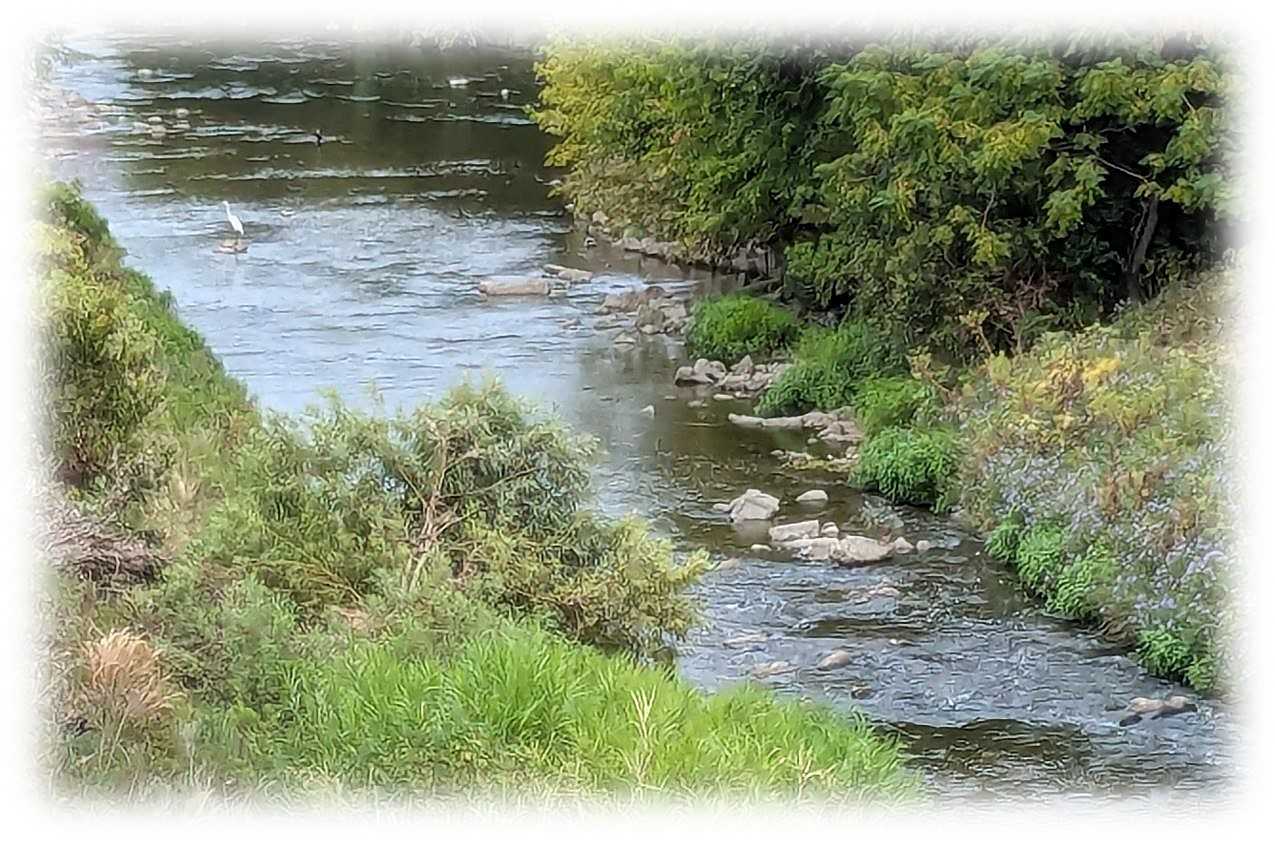 いつもなら、早朝は雲が垂れ込み、この陽気なら外に出てみよう、そんな気にさせるが、8時を過ぎると雲は消え、異常な熱波が襲ってきて、結局外に出られない日々が続いていました。9月4日、この日は接近していた熱帯低気圧が台風15号に発達し、東海地方にも影響を与え、8時を過ぎても雲が垂れ込み、昼から雨の予報。これなら神社巡りは無理でも1時間くらいはシラハエ釣りに出かけられそうだ。やってきたのは車で名古屋市千種区地内の矢田川支流香流川に出かけました。ここはシラハエ釣り以外にも、以前カワセミを見かけた場所で、以来カメラを持って何度か訪れたが二度と出逢う事はなかった。現在の香流川は大きな鯉やナマズが繁殖し、大型のサギや鴨も訪れ、この日も白鷺が小魚を追って川面に佇んでいます。炎天下の日中はシラハエもやる気がないが、今日のような天気なら水面を割って毛鉤を追う元気なシラハエもいるだろう。フライラインriver peakDT1FロッドUFM oikawaspecialリール cantata 2100ラインは購入依頼使い続け、2年ほど前にwebで購入したもので、DT1では一番安価なもの。ロッドやリールは40年前に渓流禁漁時のシラハエ用として買った。シラハエ相手でも15㎝を越えると、40㎝級の虹鱒でもかけたかのような釣り味が得られ今も愛用しています。源流でも重宝し、大きな岩魚も釣り上げています。大きな番手のような強引な取り込みはできませんが、繊細なやり取りで取り込む一匹は格別なものがあり、山行の際はこればかり使っていました。難点は大きな鉤が振れない事、ロングキャストには不向き、風に弱いなど問題はありますが、釣り味がそんな問題を払拭してくれる。古稀も過ぎるとシラハエ相手のドライフライは全く見えないので、若い頃のように鉤掛かりする回数は自ずと減るのも致し方ない、さりとて鉤を沈める釣りは好きではない。冬場の丸々としたシラハエや、この夏場に見られる婚姻色を纏ったオスの写真を収めたくて年に何回かこうして出かけている。自分なりのルールがあり、1時間以上はやらない(椅子が必要)、鉤をロストしたらそこでおしまい(アイに糸が通せない)。前回は8月に訪れ、40℃近い気温と湿度でラインが伸びず、シラハエも相手にする気はなく、10分程で退散。今回は車用の固形ワックスでラインはコーティング、ガイドもシリコンで塗布したこともあり、前回に比べ格段に快適になりました。しばらく振っていると元気な奴が水面を割って出るようになり、やる気スイッチが入ったようです。毛鉤をふんわり自然に投げてやると、シラハエと言えども、アマゴやヤマメのように着水前の毛鉤に飛び出してきます。この後、最高の出方で掛けた瞬間に鉤が外れ、バレたとな思ったが、手繰り寄せるとなんと鉤がない。合わせ切れだろう、使いっぱなしの鉤をかけたまま銀色の魚体が消えていくのが見えた。ゲームオーバーだ。家に帰って新しい毛鉤を付けるとしよう、まだ、何本かあるはずだ。夕暮れや朝方でなくとも、雲行き次第で日中でも相手にしてくれるようです。視力トレーニング・反射神経改善・肩痛改善を兼ねてまた訪れよう。所在地 / 名古屋市千種区竹腰1