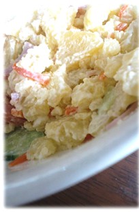 さいしょから、手ごたえが、おかしいと思ったんだよね。レンジから出したジャガイモを、フォークでつぶす時。指が痛くなるくらいで。それでも、力技で押し切ったようするに、加熱時間が短くて、やわらかくなっていなかったのよ。ハム、にんじん、きゅうりとマヨネース。じゃがいもは、生のまんま状態。口の中で、ガリガリ、言いますの。ってゆーか、食べるまで、気がつかないわたしってじゃがいも、数片、ふきとんで、床に落ち。ボーロボロ。ちゅちゅ氏は”ラッキー”。んまそうに、拾い食い。