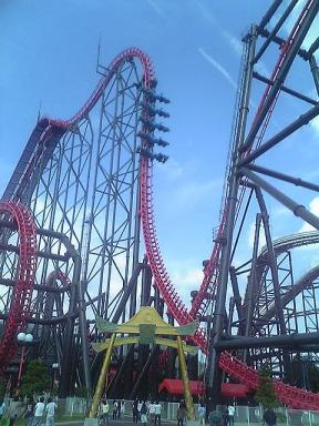 行ってきました。富士急ハイランド。恐怖の絶叫マシン「ええじゃないか」もう尋常じゃない動きをしてましたよ。人をモノのようにクルクル回転させながら運ぶ姿はまさしく怪物のようです。さすがにこれに乗るのは遠慮させて頂きました。3時間待ちというのを言い訳にして。。。絶叫系は苦手なんですよ。FUJIYAMAがあるから、富士急には近づかないようにしていたのに今回は断れなかった。会社の留学生を連れて行くという名目だったし、幹事が怖かったし(笑) まずは、どどんぱに乗せられた。超スピードで駆け出していったけど意外と大丈夫だった。 そして強敵のFUJIYAMA 1時間待ちで緊張もピークに達したがこれも、最初の下りを耐えたらなんとか大丈夫だった。他にも色々乗ったけど、この強敵2つを経験したという実績を得られた事は良かった。でも、次回はええじゃないかに是非乗ろうという計画が早くも出ている模様。是非とも、それはご遠慮願いたいものです。
