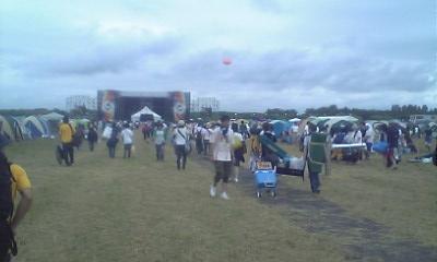 8/18~8/20早朝にかけて北海道石狩市の樽川埠頭で行われたRising Sun Rock festival in EZO行ってきました参加しましたこれがメインの今回の北海道旅行でしたから。キャンプサイトのチケットを購入して会場内でテントを張って2泊する予定。荷物も膨大です。しかも、駐車場から会場まで歩いて30分弱かかるという状況。数万人の入場者が大量の荷物を持って長い行進です。15時の開演までに、入場して準備が終えられるのか。。。↑続々会場入りする参加者天気は雨の予報。雨が降るまでにテントを張らないと今夜は悲惨な状況に。。ここで、事件がテントの支柱が折れてしまった絶望的な状況だったけれど、ここは会場内にいるColemanのスタッフの方の助けを得て無事復旧。テントも建てることができました。ようやく心置きなくライブを楽しめるぞ~三人の侍(CHAR、奥田民生、山崎まさよし)くるりアンジェラ・アキHYPE’Z東京スカパラダイスオーケストラどれも、最高でした~PE’Zは何度かライブ観た事あるけどアンジェラ・アキは存在感充分(爆笑トークも歌唱力も)、スカパラは会場を大興奮に巻き込んでました。にも負けず頑張った! 2日目は天気も回復。MONGOL800真心ブラザーズケツメイシ奥田民生米米CLUBUA浅井健一吉井和哉ザ・クロマニヨンズEGO-WRAPPIN’タイジ・オールスターズ(シアターブルック)なんと言っても、ケツメイシ最高!!会場を大興奮の渦に巻き込みました。太陽・さくらetc..米米のSHAKE HIPや吉井和哉のLOVE LOVE SHOWなんて懐かしい曲で盛り上がり、タイジ・オールスターズには女優の松雪泰子さんが歌手としてゲスト参加!! ラストはKEMURIで日の出まで演奏。しかし、日の出の時刻になっても曇り空で太陽は出ず。残念。でも、オールで盛り上がったライブは盛大に終了。達成感は充分。楽しかった~。KEMURIのライブ観ながら、ちょっと立ち寝したけど(笑) ライブ終わって帰路に着く頃になって、ようやく太陽は顔を出しました。