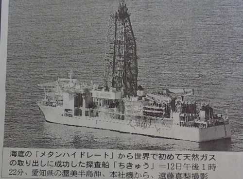 テクノロジー創生の前提となるのが、電力の安定した供給であり(電気がとまって動く装置は、研究所にはありえない事から明らかです)、開発製品のコストパフォーマンスのためには安価な電力供給が求められていると考えられます。また、環境にやさしく、自然保護の観点と両立するクリーンエネルギー及び自然エネルギーの開発は、テクノロジー創生のテーマになってきています。しばらく、資源及びエネルギーのテーマをシリーズで記述しようと思います。2013年3月13日 朝日新聞 海底メタン採取成功日本の排他的経済水域内の南海トラフには、メタンハイドレートが存在することは、海洋法条約との関連で知っていました。また、広瀬隆 著「原発ゼロ社会へ!新エネルギー論」の62ページに記載されていますが、"炭素に対する水素の比率が高い化学成分ほど、高エネルギーが出る。自然界で、メタンほど炭素に対する水素比率の高い物質は、単体では存在しないので、天然ガスは大きな熱量が得られるのである""ガス田で採掘されたままのガスには、炭酸ガス、硫化水素、水分などが含まれているが、これらの不純物を取り除いて、メタンを主成分としたガスが一般に天然ガスと呼ばれる"この参考書籍の見地からも、メタンハイドレートからメタンが取り出せたら、クリーンなエネルギーになりますので、この記事に関心を持ちました。●経産省の委託を受け、独立行政法人の石油天然ガス・金属鉱物資源機構(JOGMEC)が奄美半島から約80キロ、志摩半島から約50キロの海底で取り出しに成功した。取り出し作業は12日午前6時前から始まり、ポンプで周辺の水を汲み上げることで地層の圧力をさげた。圧力が下がると、メタンハイドレードは水とメタンガスに分解される。こうして出てきたガスをパイプで引き上げ、海に浮かぶ海洋研究開発機構の探査船「ちきゅう」が回収した。今後2週間ほどかけて数千〜数万立法メートルのガスを取り出す計画だ。 (JOGMECは昨年2〜3月、水深1千メートルの海底からさらに330メートル掘り勧めたメタンハイドレートの地層まで井戸を掘り、そこにパイプを差し込む「事前採掘」をした。今年1月末からはガスを取り出すための最終作業を進めてきた。)●1.日本では1980年代からメタンハイドレートの研究が始まった。「日本の天然ガス消費量の100年分が近海に眠っている」(1996年通産省系研究所の資産) 2.2008年に閣議決定した「海洋基本計画」ではメタンハイドレートからガスを生産して利用する技術を2018年度をめどに整備する。(最大の壁は費用だ。JOGMECなどの資産でも、費用(生産原価)は1立方メートルあたり46〜174円で、液化天然ガスの輸入価格よりも高い) 3.安倍晋三首相の施政方針演説(2月末)「新たな可能性をもたらすイノベーション」として、ロケット打ち上げなどとともに「世界初の海洋メタンハイドレート産出試験」をあげた。2013年度予算案に87億円を盛り込み、日本海側の埋蔵量を調べる。(日本海のメタンハイドレートは海底の表面に固まる「表層型」とされ、渥美半島沖のような地下にある「砂層型」と違うため別の取り出し方法を開発しなければならない)✶米国はスペースX等の宇宙ビジネス時代に入っています。また、ロシアのプーチン大統領も極東に宇宙ビジネスのための敷地を用意して、日本に参入しないかと提案しています。日米衛生利用合意で日本は実用衛生が使用できない状況ですが、日本の民間宇宙ビジネスの挑戦が開始されても良い時期に来ているのではないでしょうか?! 4.昨年9月には、日本海に面した10府県が協力して「海洋エネルギー資源開発促進日本海連合」を立ち上げ、どれだけ埋蔵量があるか探ろうとしている。✶日本海側は日照時間が短いので、固定価格買取制度における太陽光発電の利用が困難なエリアであり、クリーンエネルギーであるメタン及びコージェネレーションでの利用に期待されているのではないかと、想像しています。実際、太陽光発電は北海道や九州地区にメガソーラーシステムが既につくられています。●石油開発会社の石油資源開発が昨年10月、日本で初めて秋田県でシェールオイル(原油)の試験試掘に成功。秋田や新潟には国内の原油消費量の数ヶ月分にあたる数億バレルが埋まっている可能性があり、採算に合うか調べている。