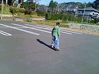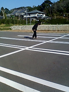 ↓日曜日。結局近くの駐車場でノブとターと遊びました。ノブはローラーブレード、私はスケボー、ターは……じゃま?スケボー、重い体の母レイコもとりあえず乗れるようになりました。結構楽しいかもー。