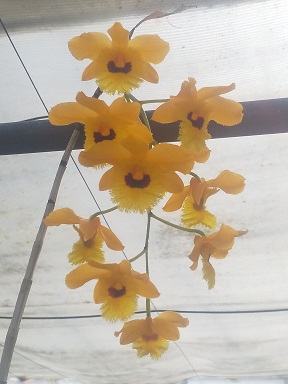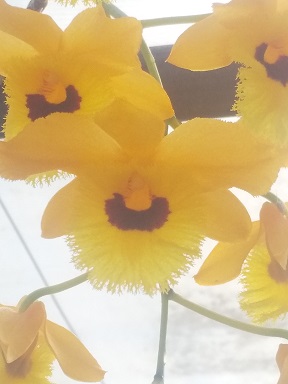 デンドロビューム属の原種、フィンブリアタム var. オクラタムです。