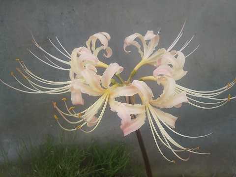 白くもない白花ヒガンバナですが時期になると咲きます(^^;)