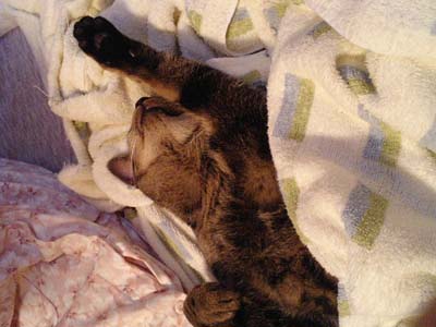 嫁さんも無事退院したので、一安心。でも、まだ調子が完璧じゃないみたいで、寝てることが多い。休日だったので、付き合ってごろごろしてると、コテツもやってきて3人で川の字。しばらくして、、、、ガスが漏れたみたいな臭いが!嫁「おならした?」僕「してないっす。」(;´▽`A``嫁「じゃ、だれよ?」僕「コテツのほうから臭うよ」コテツ「・・・」寝てる嫁が疑わしい目をしてるので、寝てるコテツの尻を嫁の方へ向ける。嫁「うわーーーーーーー」ソートーくさかったらしく、悶絶。そういえば、コテツと居眠りしてるときにもくさかったな。猫もすかしっぺするんですねー。
