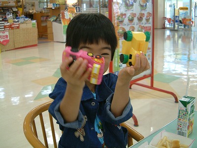今日は7回目の結婚記念日でした。でも旦那は急な出張。午後から母を父の病院へ送り、夕飯の材料を買いにスーパーへ行きました。買い物をした後、喉も渇いたのでマクドナルドで一服することに。アッキーはハッピーセット、私はコーラー。今回はピンクの車を貰いましたが前に貰った黄色い車も持ってきてたので2台を手に持ち超ご機嫌さんのアッキーです。 この写真、ちょっとボケてるけどアッキーの嬉しそうな目が見えるので