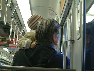 今日は家族で夕方からえべっさんに行ってきました(旦那は出張中ですが)天王寺駅で仕事帰りの父と合流。父の姿を見つけるとアッキー大声で「ジーーー!!」っと飛び付いて行ってました電車の中での2人です。電車から動物園などが見えるので2人で何やらヒソヒソ話をしておりました 今宮戎神社に着くと時間も早かったのか結構空いてました。えべっさんの雰囲気が大好きな私。大きな音で「商売繁盛で笹もってこい・・・」と続く音楽に心ウキウキします♪テレビ局も撮影準備してましたし、なんといっても警察官が多かった。何の警備なんでしょうか?スリとかの犯罪が多いのかわかりませんが、警察官がいっぱいでした。ご苦労様です。駅から神社までアッキーを抱っこしてくれてた父が「おおーいたいた!!テレビで見た福娘チョッとアッキー見といてくれ!!」と言いお目当ての福娘さんの所でお札やらを買っておりました。 これが毎年の父の楽しみみたいなもんです今宮戎から心斎橋まで歩きます。毎年えべっさん帰りに寄るミュンヘンで食事食事を終えてから地下へ入りショッピング通りをJR難波まで歩きました。おねだり上手のアッキーは父に「どんぐり共和国」のお店でまっくろくろすけの音がなる人形を買ってもらってました 奈良に戻り、地元スーパーで買い物途中。子供用の車のショッピングカートに乗っていたアッキー。しばらくするとイビキが聞こえてきました。仰向けで超熟睡