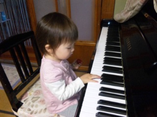 こんばんは。おかーさんです。なんとなく梅雨時らしい「じめっ」とした天気が続いています。昨日あたりからは急に気温も上がってきて、あわててさーちゃんの夏服を調達しました。西○屋さん、ありがとう。こどもの服は、1シーズンごとに用意しないといけませんね・・。さて、20日にさーちゃん、1歳11か月になりました。イヤイヤ爆発の「魔の2歳児」まで、いよいよカウントダウン。その片鱗はもう顔をみせておりますが・・。この1か月での大きな変化は、というと。ウンチがおまるで成功することが増えてきました。あとは、「しっし、でた」とか「しっし、でたいよ」とか言うようになりました。「でたいよ」と言っておまるに座っても出ないことがほとんどだけど、なんとなく出る感じがわかるようになってきたのかなー。こういう言動がでてきたこと自体進歩だと思ってマス。それから、今日で3日目、「おっぱいなしでねんね」してます!そうです、さーちゃんはまだ寝るときおっぱいを吸っておりました。おかーさんは、ちょっと焦りながらも、「おっぱい!おっぱい!」とせがみ、「おっぱい、おっきーねー!」とおだてる(笑)さーちゃんの作戦に負けておりました。最近「ママはテンパリスト」(漫画です)の2巻が出て、寝かしつけに「鬼が来るよ~」と言っている、というのを見て、試してみたのです。「さーちゃん、ねんねしない子には、おばけが来るんだってよ。」(目をまんまるにして?な顔)「おばけ来たらいやだよね?」(無言でうなづく)「じゃ、おめめつぶって。ぎゅ、って。」(素直に目を閉じる)・・・こんなやりとりをし、目を開けるさーちゃんに「まだよ。おめめ、ぎゅ、だよ」と言うこと数回。・・・寝てしまいました。案外あっさりと寝てしまってびっくり。なんだ、おっぱいなしでも寝れるじゃん。昨日はおばけを引き合いに出さなくても「おめめ、ぎゅ」と背中トントンで寝てしまい・・今日は5分くらいで寝てしまいました。あれ、おっぱいで寝かすより早いじゃん。最近は特におっぱい大好きで、お風呂でもおっぱい吸いたがって困っていたのでした。おっぱい卒業はまだ無理か・・でも2歳になっちまうよ~・・ってちょっと焦りましたが。。よかった、なんとか卒業できそう。今の時期はたくさん外遊びしてクタクタになっているのも効を奏しているのかも。言葉はどんどんバージョンアップしていくし、歌や芸も増えてきたし。今日なんて朝目覚めていきなり「おしり、ペンペン!」ってやってましたこの間のチャグチャグ馬ッコも、保育園の先生に「おうまさん、パカパカね」とか「しゃらん、しゃらん(馬の衣装の鈴の音)って」とか言って教えていたとか。少しづつ会話になってきております。来月は2歳のお誕生日が来ます。ますます「こども」になっていくんだろうな~。お嬢様の必須科目、ピアノ。どう?なかなかサマになっているでしょ?「ぴーす」もできるのよ。左手にはミニトマト・・。じーちゃんが軽トラに乗せてくれたの。たのしー。ブーブー!!