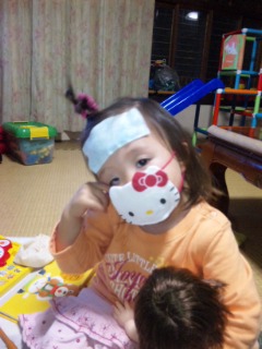 こんばんは。おかーさんです。世の中、インフルエンザが猛威をふるっておりますが、皆さん大丈夫でしょうか?実は。さーちゃん、インフルエンザにかかったのでした・・・ひえー・・10月25日、痰のからんだ咳と鼻水。風邪かな~、と思っていたら、翌日の朝37.5℃。声もハスキー。午前中ばーちゃんにお願いして仕事を片付ける。お昼から38℃を越えてて、午後病院。やはり熱だと「疑い」ってことで受付のあとは車で待機。看護師さんが来て聞き取り。病院は混んでいて、小児科もかなりの待ち時間。眠気と空腹でさーちゃんぐずぐず。持ってきたパンとお茶で活気が戻る。さすが、おかーさんの子。やっと診察。先生、「38℃越えてからまだ時間が経っていないからインフルエンザの検査はできないな・・明日まで下がらなかったらまた来てね」と。とりあえずキティちゃんマスクと冷えピタ27日、朝36.3℃。おお、下がった。インフルエンザじゃなかったんだ~。いちおう午前中は休みもらって熱の様子を見る。午後からばーちゃんにバトンタッチ。まだ声はハスキーだけど、じき良くなるだろう・・。28日、やっぱり熱なし。よし、今日は登園!特に変わった様子もなく一日過ごす。良かった。29日、熱なし。登園。咳とハスキーな声は続行中だけど大丈夫さ~、と安心していたら・・お昼にケイタイが鳴る。。さーちゃん38.8℃・・急いでお迎え、そして病院直行。今日はすぐ隔離の診察室へ。先生「熱はいちど下がっているし、ゼロゼロしてるからインフルエンザというより気管支炎かも。両方検査してみましょう」。まずはレントゲン。幼児はじっとしていないので専用の台に「ばんざい」の格好で固定。「何すんの?」みたいな顔をするさーちゃんに「お写真カシャだからね」と言うと「うん」とあっさり拒否ナシでクリア。。。。写真好きなんか、あんた。。。そしてインフルエンザの検査。綿棒を鼻にぐりぐり・・・「ぎゃぁ~!」・・騒ぐわな、そりゃ。ウルウルのさーちゃんをなだめて・・次は採血。うーん、「痛くない」と言えばウソになるし(この期に及んでいい人になりたいおかーさん)・・「さーちゃん、お注射ちっくんするよ。痛いよ。でも頑張ってじーっとしてるんだよ」と3~4回は言い聞かせたか・・母も必死。看護師さんが来ていよいよ針ちっくん!「いたぁいぃ~」と叫ぶさーちゃん。看護師さん一人だったので(いつもは2~3人で来ておかーさんはカーテンの外に追いやられるのに・・人手不足か?)おかーさん、さーちゃんの腕と体を押さえながら「がんばれー、じーっとしてねー。看護師さん上手だからすーぐ終わるよー。10までかぞえよっか?いーち、にー・・」途中から看護師さんも一緒にかぞえてました(笑)。おかーさんの必死の形相に気おされたのか、言いつけをちゃんと守ったのか、さーちゃんは「うぅ~うぅ~」とうなりながらも微動だにせず頑張りました。看護師さんも「2歳にしちゃ、すごすぎるわよ」とほめてくれました。いよいよ結果が出て・・先生「おかーさん、インフルエンザAと気管支炎。両方でしたぁ・・ 」・・・なにーい・・・インフルエンザについては、スタートがはっきりしなくて、タミフルの投与は意味がなさそうだから何もなし。気管支を広げる薬と炎症止め、咳鼻水の薬をもらいました。シロップの薬は大好きなさーちゃん。薬のボトルを握りしめ「おくすりー」とご満悦。帰宅すると「ちっくん」の様子をじーちゃんばーちゃんに詳細に教えていたのでした・・。夜には36.9℃。あれれ?下がった?と思っていたら夜中やはり38.8℃。。なんじゃい、このアップダウンの幅は?30日、午前中仕事休んで様子を見る。38℃台から下がらず。午後ばーちゃんにバトンタッチ。やはりしんどいのか、遊び方がいつもとちがう。31日、土日はおかーさん仕事休み。朝36℃台。おお、そのまま。そのまま。。。声はまだハスキーだけどだいぶ元気出てきたかな。おかーさんと静かに室内あそび。だいぶ元気で、ぽぽちゃんのお世話。授乳中だそうです・・。1日、声がずいぶん良くなってきた!食欲はあるような、ないような。でもしっかり水分とれるしちょこちょこつまみ食いはしてる。ウンチしっかり出てるから食べれていると思う。おかーさん、室内あそびのネタにつまり、ちょっとばーちゃんにお願いして「ベビーブック」を買いに行く。良かった、シールやしかけ遊びにハマっている・・。さて、熱が下がって2日したら登園OKと言われたが、あしたどうしよう?・・と思っていた矢先、「盛岡市で2歳女児がインフルエンザで死亡」のニュース。おかーさんとばーちゃんの意見一致。「あしたはお休み。3日の祝日まで休んでから登園。」そして今日。おかーさんお仕事で一日ばーちゃんにお願い。比較的元気で声もすっかり元に戻っている。食欲がちょっと気にかかるけど・・でもお菓子はちょこちょことよく食べているし、大丈夫でしょう。夜はいきなり病院ごっこを始めたさーちゃん、本のカバ