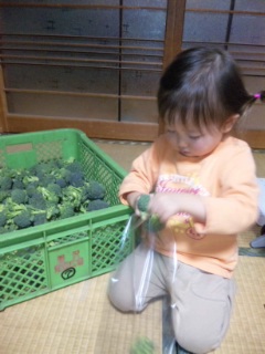 こんにちは、おかーさんです。すっかり真冬らしくなってきて、気がつけば年の瀬。早いもんですねぇ、一年って。さて、さーちゃん12月20日に2歳5か月になりました。すっかりおねーさんっぽくなりました。お手伝いも上手。ばーちゃんのお手伝い。ブロッコリーを袋詰め。うーん、おかーさん、今夜はブロッコリーのシチューなんてどう?そして盛岡は雪景色になりました。さーちゃんの保育園の園庭も、この通り。最近のさーちゃん、ブームは「となりのトトロ」。おかーさんが買ってきたDVD。はじめはちょっと怖かったみたいだけど、慣れたら面白くてしょうがないみたい。毎晩、寝る前に「トトロみるぅ~」とせがみ、見終わってエンディングになると、泣く。「もういっかいみるぅ~」・・・・・そして夜更かし。おかーさんとしては、何とか別のものに興味を向けないと、夜更かしで朝大変なのです。で、クリスマスにサンタさんにお願いした。さーちゃんが夢中になれるもの!そしてやってきました、クリスマス。我が家では1日早く23日にパーティーしました。ケーキのろうそく「ふー」して、お誕生日みたいね。いよいよ「サンタさんが置いてった」プレゼントが登場。大きな箱・・・なんだ?開けてみよう!うわー、キッチンのセット!「さーちゃんカフェ」、オープンですぅ。おとーさん、コーヒー?紅茶?軽食はいりませんか?・・・はてさて、おかーさんとサンタさんのもくろみ、成功するかしら?キッチンセットに夢中になって、トトロブームが去って早寝をしてくれるといいんだけど・・。なにせ相手は2歳児、わかりません。今夜からが楽しみです。うふ。それでは皆さん、素敵なクリスマスを・・・