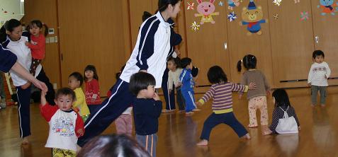こんばんは!さーちゃんです。今日も元気いっぱいよ。寒くても外あそび、外あそび!いよいよ12月ね・・・って、おかーさん、1か月も更新してないじゃん!みなさんごめんなさいね。さて、保育園ネタが続くわよ。昨日、 体育発表会 があったの。運動面での成長をみてください、ってことで、おとーさんおかーさんも来てくれたわ。リトミックと器械体操を発表したの。リトミックは音楽に合わせて体を動かすの。クラスが上がるにつれて難度も増すわ。わたしたち「ひよこぐみ」は、ほとんど無法地帯。泣いている子や何もしない子、上手にできる子 ・・・私?私は・・・先生に抱っこして「コアラ」を表現してみたわ(汗)言っとくけど、泣いてないわよ。そして器械体操。「ひよこぐみ」の種目は、1・マット運動:「たいこばし」を渡る。2・鉄棒 :ぶら下がって5秒キープ。3・平均台 :バランスをとってゆっくり歩く。4・跳び箱 :2段の高さによじ登ってジャンプ。まあ、ご覧なさいな。おかーさんが撮ったデジカメの写真と、おとーさんが撮ったビデオからの静止画と混ざっているからちょっと見にくいかもね・・。まずは「たいこばし」。ま、ウォーミングアップね。楽勝よ。そして「鉄棒」・・・私、ぶら下がるだけじゃ物足りなくて、アレンジを加えて足をかけてみたの。どう? 「平均台」。慎重に、慎重に・・落ちないで渡りきったわ。 最後は「跳び箱」。楽しかった。 「ひよこぐみ」はこんな感じだけど、最終的に年長クラスの「ぞうぐみ」になると鉄棒は逆上がり、跳び箱は小学生用の5段ができてしまいます。平均台なんて、真ん中で台上前転しちゃうの。すごいわ。かっこいい。ブリッジまでやっちゃうのよ。しかも全員できるの。おかーさん「私にはできない・・」って・・・オトナのくせに情けないわね。そして最後は「ぞうぐみ」さんの「跳び箱チャレンジ」。おかーさんは「筋肉番付」みたいに誰が最高何段まで跳べるか、っていうチャレンジを想像していたの。ところが。実際は、1段高くしては全員でチャレンジ。できなかった子はもう一度。最終的に8段を何人が跳べるか、のチャレンジでした。6段は17人全員クリア!すごいわ!7段になって4人くらいのお姉ちゃんたちが跳べなくて・・でも泣きながら「おねがいします!」ってチャレンジする姿におかーさんウルウル。8段は10人がクリア。最後に何度もチャレンジしたお兄ちゃん、泣きながらも「練習では跳べたよ!」と励まされ頑張ったわ。自然とホールは大きな声援。子供たち、保護者たち、先生たち、割れんばかりの応援。・・・結局クリアできなかったけど、クリアできた子よりもよっぽどかっこよくて、ヒーローだったわ。おかーさんったら、涙が止まんなかったみたい。感動の中終わった体育発表会。来年も私の成長を見てよね、おとーさん。おかーさん。そして、数年後には「かっこいい」ぞうぐみさんになってみせるわ。待っててね。 おかーさんです。夕涼み会の頃はおかーさんにくっついてステージに上がれなかったさーちゃんが、おかーさんから離れてちゃんとできたことにまず感動。成長してるんだな~・・・。そして、ぞうぐみさん、かっこよすぎ。もう、泣いたわ泣いたわ。跳べなくて悔しくて泣いちゃっても、あきらめない。「おねがいします!」と右手を上げて走ってくる姿はとうてい涙なしでは語れません。そして、みんなにあれほど応援してもらった、その体験は8段クリアよりよっぽど意味があると思うのです。おとーさんに、「さーちゃんがぞうぐみになったら・・・跳び箱チャレンジ、見てられる?」と聞くと、即答で「無理」。ですって。そうね。おとーさんが代わりに8段跳んであげそうな勢いだわね。こどもって、すごい!
