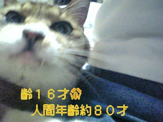家の一番の年寄り猫を紹介します。名前は”きゃあ”といいます。思い返せば16年と3ケ月前、雨の日でした。うちの母が近所のスーパー前で子供達が集まって何やら相談しているのを見つけて、声をかけたことから始まりました。子供達の抱えていた段ボール箱の中に猫がいました。キジトラで白足袋はいたやたら瞳の大きな子猫。当時の我が家では猫を飼うなんて考えられないことでした。それと言うのも父が猫嫌い。しかしあまりのかわいらしさに母が衝動飼いしてしまったのです。さて家に連れ帰ったものの、どう父に切り出すか、しばらく隠しておこうと母と妹と私の3人で何とか誤魔化しながら一週間程が過ぎた頃、さすがに子猫に鳴くなと言っても無理な話でバレてしまいました。そして今現在父は猫にも犬にも人間同様に話しかけております”きゃあ”という名前ですが、「ぼくの地球を守って」という漫画にでてくる目のでっかい猫がいるんですけど、それに似てたのでその名前をそのまま付けました。以来、うちの初猫として庭の見回りからねずみ取り犬のしつけまでしっかりやってくれてます。