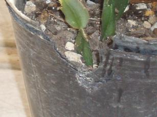 こんばんわ。今日は、国民の祭日で休みです。私は、全く関係なくお仕事。でも、市内は、観光客でいっぱいでした。が、昨日よりマシなような気がします。金閣寺も、開門前からすごい車が待っていました。10時ごろは、2~30台ぐらい駐車場待ちでした。かなり大きい駐車場ですが足りなかったようです。夕方は、空いていました。きっと明日は、家でゆっくりされると思いますので市内はガラガラになると予想しますが、どうでしょう??・・・さて、今日は、こんなものを見つけました。わかります?ビニールポットの先がないのです。きっと鳥が食べたのでしょう。シャコバサボテンの挿し葉は、全く被害なし・・・。ビニールっておいしいのでしょうか?わかりませんが最近の鳥など何でも食べるのですね。さすがにびっくりです。では、今日も一日お疲れ様でした。おやすみなさい。