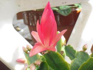 こんばんわ。今日は、朝は雨でしたが、昼ぐらいからいい天気になりました。ベランダを覗くとこんなのが咲いていました。今年第一号です。毎年もう一つの方が先に咲くのですが、今年は、このニューホワイトが先に咲きました。全体像です。まだ苗自体は、3年目ですのでかなり小さいですが、毎年ちゃんと咲いてくれます。一年目だけは、購入してすぐに室内に入れてしまい環境の変化に耐えられず花芽を落としてしまったことありましたがニ年目以降は、そんなこともなく元気に花を咲かせてくれています。では、今日も一日お疲れまさでした。おやすみなさい。デンマークカクタス 桃色の花 【2009年11月12日入荷商品】爛漫 デンマークカクタス ホワイト(1鉢)変わり咲きなのだ!めずらしい白のコンペイトウ咲き!別名プチダイヤモンド【花終わり品】デンマークカクタス【バカボーン】5号鉢植え(シャコバサボテン)