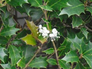 おはようございます。今朝は、とても寒い朝です。きっと5℃を下回っているのではないでしょうか?近くに温度計がないので体感温度でですが・・・。日中も10℃と一週間前ぐらいは最低温度がこれぐらいだったので寒く感じますね。・・・さて、今日は、斑入りヒイラギです。この木に花が咲いていました。分かりやすく・・・。うちのではないのですが、咲いていました。うちにあるのが、五色ヒイラギと姫ヒイラギなのですがこちらは、花が付かない品種なのでしょうね。うちに来てから一度も花が咲きません。よそのうちも咲いているのは見かけません。鬼ヒイラギと斑入りは見るのですがね。もしかしたら、品種が違うのかもしれないですね。葉が似ていても(勝手な推測ですが・・・。)では、今日も一日がんばりましょう。常緑樹だから美しい斑入り葉が年中楽しめる斑入りヒイラギ (フイリヒイラギ シマヒイラギ)鬼柊 オニヒイラギ【14%OFF!!7350円以上のお買上げで送料無料♪♪】美しくてトゲがある!五色ヒイラギ姫ヒイラギ