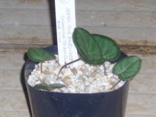 こんばんわ。今日は、暖かい一日でしたね。ガーデンシクラメンも久しぶりに外に一日出しました。夜は、さすがに室内へ戻しました。・・・さて今日は、原種シクラメン エレガンスです。葉が、昨日紹介したコンフューサムと違ってこれから咲くシクラメンです。というより咲いてほしいです。原種は、生長がゆっくりなのでなかなか咲かないので今年咲くのかどうなのかわかりません。咲いてほしいと思います。また咲いたら載せますね。それでは、今日も一日お疲れ様でした。『お買い得』鉢植限定! シクラメン『ミニヴェラエレガンス』冬咲きの原種シクラメン□原種シクラメン コウム‘Pewter Leaf’再入荷(2009年10月7日)山野草:原種シクラメン コウム白系シルバーリーフ