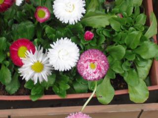 こんばんわ。今回は、散歩中に咲いていたデージーなどです。菊咲き?の変わった花もありました。すごくきれいなので撮ってみました。最後は、我が家の移り色のパンジーです。色が落ちていく途中でアプリコット色ですかね。濃い赤色から、この色になって、最後は、白色に変化していきます。(前回載せました。)季節的にたくさんの花が咲いてきて、載せる間もなくどんどん進んでいくので更新が大変です。出来るだけ早く載せないと季節がズレてきます。頑張って更新します。適当に流してください。では、またね。白、ピンク、赤の混合。小さなかわいい花です。【アウトレット】デージー(ヒナギク)/ポンポン混合まき時を過ぎたのでアウトレット価格 タキイデージーの種タッソー ストロベリー&クリーム寄せ植えのアクセントや単品植えにもピッタリ!赤のデージー寄せ植えのアクセントや単品植えにもピッタリ!ピンクのデージー寄せ植えのアクセントや単品植えにもピッタリ!白のデージー寄せ植えなどに大人気産地直送!大輪で元気いっぱいのパンジー苗各色【アウトレット】パンジー/スーパーレインボーミックス訳⇒一番花終わっています【パンジー苗】【訳あり】【色お任せ】