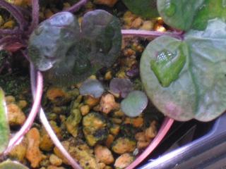 こんばんわ。今日は、いい天気でしたね。帰宅前からまた雨が降ってきましたが・・・。明日もそのまま雨のようです。朝に花殻摘みしておいて正解でした。今日は、会社でヒマワリ、朝顔、コスモスなど種植えしました。たくさん花がついてくれるといいなぁ。・・・さて、今日は、原種シクラメン プルプラセンス リモーネファームです。花と葉です。こちらは、今年の秋に購入しました。そして、初開花です。雨の中ですので香りはわかりませんでしたが、きっといい香りがするはずです。天気がいい朝に確認してみます。リモーネファームは、プルプラセンスの中で銀葉をしています。リモーネ地方で発見された、シルバーリーフなのですよ。結構貴重なのです。小さいのですが、これからどんどん大きく育てていきたいと思います。では、今日も一日お疲れ様でした。おやすみなさい。山野草:原種シクラメン コウム白系シルバーリーフ