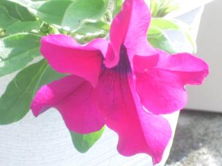 こんばんわ。今日は、寒い一日になりました。久しぶりにジャンバーを着て出勤でした。帰宅前に、奥さんから電話。どうも、内容は、長女が、二男を落としたようです。最近重たくなってきていたので危なかしかったのですがとうとう力尽きて落としました。7kgぐらいあると思います。(そういえば最近測かっていませんね。)二男は、ずっと泣いていたようです。私が帰るころには、ご機嫌が直って私の顔を見るとニコニコしていましたが。・・・さて、今日は、ペチュニアです。冬を戸外で越して、2年目に突入です。その苗から花が出てきました。が、こんな花です。虫が食べたようです。一番のいい花を食べるなんて、第2号の花を大切にしたいですね。では、今日も一日お疲れ様でした。おやすみなさい。2010/4/26入荷!秋まで咲きます★ペチュニア・カーペット バタークリーム【3号・9cmポット苗】(10P11may10)花苗ペチュニア■新鮮花壇苗■ペチュニアパープルベイン10.5cmポットペチュニア ”パープル””ブルー””ライトブルー””ブルーベイン” 3.5号