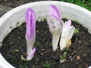 おはようございます。今日は、朝、パソコンがなかなか立ち上がらず簡単にアップします。コルチカムがようやく発芽しました。八重咲きなので遅い目なのはわかるのですが、かなり遅れたような気がします。今年は、開花がないのかなぁ。ってあきらめていましたが出てきましたね。そして、この方もようやく出てきました。サフラン。ここ2年ほど開花してなかったので今年は、掘り上げて植え替えてみました。球根自体は、小さかったので今年も不安がたっぷり。3年ぶりの開花を期待しています。では、今日も一日がんばりましょう。