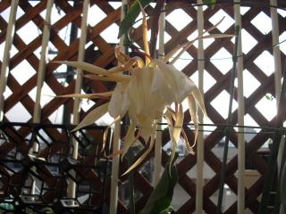 おはようございます。今日は、朝早く起きてお庭掃除しました。枯れた葉や花殻を回収し、液肥を与えました。・・・赤ちゃんは、気がつかなかったのですが朝に右の頭部に大きなタンコブが出来てました。どこかでぶつけたのでしょう。でも、泣かないので全然気が付きませんでした。タンコブが出来てあれ?って感じでした。得意の冷えピタを貼って保育園へ登園です。・・・植物は、月下美人です。今年2回目の開花がありました。(あった。)実は、前から気がついていたのですが、あと1~2日で開花と思って夜見なかったのですが残念なことに咲いてしまいました。朝の咲き終わりです。開花が、近づいたらまだと思っていてもチェックはしないといけませんね。残念な結果でした。今度は、ちゃんと開花撮れるようにしますね。(いつになるかわからないですが)では、今日も一日がんばりましょう。一夜限りの幻想的なお花をご家庭でどうぞ。観葉苗・多肉植物【 クジャクサボテン 月下美人(ゲッカビジン) 】2.5号(7.5cm)ポット苗