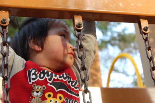 おはようございます。昨日は、暖かかったです。桜も開花進んできて見ごろになってきています。それに伴い、観光客の方々、宴会をする方々が見られました。困ったのは、毎年のことながら車で乗り付ける人。駐車スペースがなく一般道路に駐車、学生たちの自転車、わき見する方々飛び出してくる人、車が来ても全く気にされず話して歩く人、仕事柄、運転をするので渋滞の山、山。しばらくは、こんな日々が続きます。花が散ると、いつの間にか人も散ってしまいますが・・・。・・・さて、今日は、ひろちゃん特集。日曜に植物園に行き、遊具があります。それを見たひろちゃんは、大はしゃぎ!!!探検ごっこスタート。始めての吊り橋。怖々渡ってました。そして、何よりも大好きな滑り台。ロープ橋。もう一枚たまに足を取られて抜けてましたが・・・。そして、行き止まり。望遠鏡になってました。ここも何回も来てました。最後は、やはり・・・。滑り台。なぜか、頭から滑ってきました。どこで覚えるのでしょうね。というより前の子がしていたのを見てやったのでしょうね。煙突の中なので落ちる心配もないので楽しく過ごしてました。色々あって楽しかったようで、笑顔全開でしたよ。では、今日も一日がんばりましょう。
