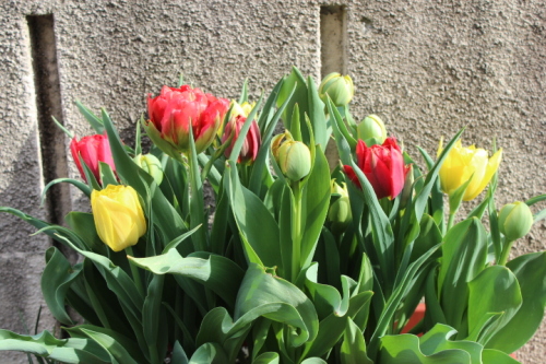 おはようございます。今日は、とてもいい天気。外が明るいとワクワクしますね。で、外に出たら、現実が・・・。花粉症・・・。そう、目が痒くなってます。出るんじゃなかった。って思ってしまいます。・・・さて、我が家のチューリップもお目覚め。個別に我が家では、今はこの2色だけ。もう少ししたら他の色も出てくるかなぁ。八重咲きが先に顔を出しました。一重は、寄せ植えにしている関係上もう少し掛かりそう。では、今日も一日がんばりましょう。
