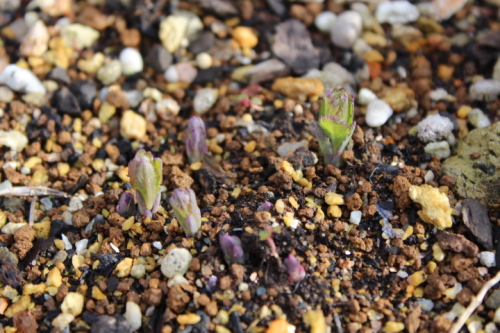 おはようございます。今日は、休日です。が、早朝から家族起き出してます。映画を見に行くんだそうです。私は、ひろちゃんはるきちゃんとお留守番。小さい子向けではないので、声をあげたりすると他の人に迷惑がかかるので自宅で待機。午前中には、見終わって帰ってくる予定。そして、夕方植物園に行こうかと話してます。桜のライトアップをしているんだそうです。ただ、どうなんでしょう?満開では、ないので・・・近くの神社は、まだ、綺麗とはいきません。我が家のも、3分咲きってところでしょうか。来週から、暖かくなるそうなので一気に咲いてくれるのでしょう。・・・雪割草が、すごく元気どんどん花が咲いてくれています。白、赤、ピンクって。山野草って本当に強いです。その横には、こぼれ種からの発芽も確認しています。もう何年かしたら花が見れるかもしれません。最近、チビちゃんたちの子育ててであまり関わりが持てないので新しい苗買えていませんが、既存のものがどんどん立派に育ってくれるので、退屈はしませんね。さて、寒い日も今日までとのことで気を取り直してがんばって一日過ごしましょう。