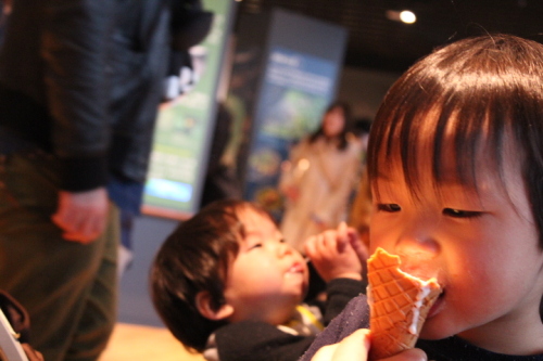 おはようございます。今朝は、氷点下1℃少し肌寒い朝です。夜は、雨が降ると予報で出ていました。・・・昨日、通勤に使っているミニバイクを12か月点検に出しました。そして、昼前にバイク屋さんから連絡が・・・。駆動系の部品の消耗が激しくいつ動かなくなってもおかしくない状態と連絡がありました。このバイク購入してそろそろ10年ぐらいになります。修理をして快適に安心に乗るためにお願いしました。見積もりを出してもらいざっと4万円とのこと・・・。痛い出費になりましたが、トラブル回避できてよかったです。・・・おちびちゃん二人ですが、こんなショットが撮れました。二人とも大好きなアイスクリームを食べているところ。日頃、仲良しなのか、仲が悪いのかなかなかツーショットが撮れません。追いかけっこしていたり喧嘩していたり仲良く遊んでいたり叩いたり蹴ったり毎日忙しく過ぎていきますが、こんなシーンを見ると少しうれしくなりますね。ひろちゃんは、はるきちゃんが大好き。保育園に行ってもいつもはるきちゃんがいるお部屋に様子を見に行ってます。そして、先生に連れ戻されています。そんなはるきちゃんは、お兄ちゃんに抱っこされるのがとても嫌。やめて!と泣いて抗議してます。でも、夜寝るときは、お顔を見て笑顔でお兄ちゃんに何か話しかけています。こんな毎日が続いています。はるきちゃん実は、後3日後に1年半検診が待ってます。さて、どんなことを言われるのでしょうね。では、今日も一日がんばりましょう。