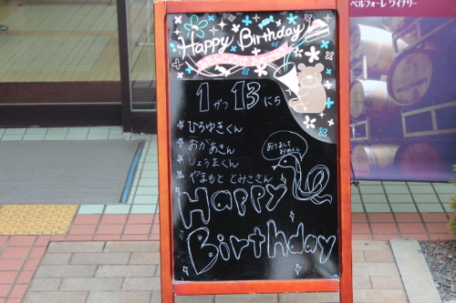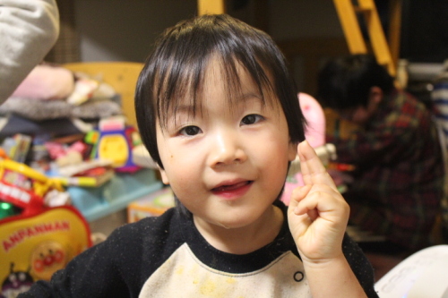 おはようございます。今日は、雨上がりのようです。関東の方は、雪が大分降っていたようです。高校サッカーの決勝戦も雪のため順延になってました。今週の土曜になるようです。気温は、少し高め現在3℃今日の最高気温は6℃の予想なので一日の気温の変化少ないようです。日の出は、7:05。日の入りが17:08で今はまだ日の出時刻になってませんがそろそろ明るくなってきてます。・・・さて、今日は、13日に誕生日を迎えたひろちゃんです。誕生日ケーキを予約すると、お店の計らいで看板を作ってくれます。今年は、本人に選ばせて、このケーキお祝いの歌を歌って一番したかったローソク消し。いくつになったの?と聞くと3歳と言って指が二本出します。修正して3本出してもらいましたがまだうまく出せないようですよ。最近は、はるきちゃんと笑いながら遊ぶシーンが大分増えてきています。下の子二人で仲良く競って成長してくれています。では、今日も一日がんばりましょう。