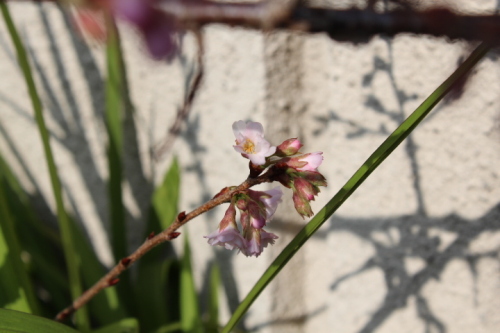 おはようございます。昨日通勤する道路下が凍てていて移動するのがかなり怖かったです。ここ京都では、道路が真ん中まで凍てることってあまり記憶にないのですが去年も2月ごろに一度あったぐらい。その状態が、1月初めにあるのですからそして、氷点下の気温すごく増えてます。20年前ぐらいに自転車でスリップして、こけた覚えがあるので結構温暖化とはいえ平均気温毎年下回っているのではないかと思われます。また、今度調べておきます。調べたら、平均最低気温は、1.6℃でした。今朝は、0.4℃でした。が、今住んでいる場所は、さらに気温低いので観測地がもう少し暖かい場所にあるのですが、それでも1℃は低いですね。平均気温の月グラフを見てもだいたい、下回ってました。寒いわけです。データって面白いですね。・・・画像は、ヒメツルソバ6年前に買って植えましたがすごく繁殖するので3年前に一度抜きました。すっきりしていたのですが、根が残っていた?種が落ちていた?のか再び出てきて去年あたりからまた、花を咲かせだしてきてます。今年は、より大きくなってます。しかもこの場所下がコンクリートなので割れ目から出てきて伸びてます。帰化植物なのですが本当に雑草化してます。育てたいものがここまで強いといいのですがそうは簡単に育たないのが園芸の楽しみ。この子もまたそのうち抜かないとまたとんでもなく増えてしまいますね。では、今日も一日がんばりましょう。
