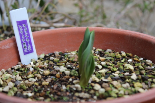 おはようございます。今日は、すでに4℃カラスの鳴き声で目が覚めました。明るくなるのが早くなってきましたね。うれしい反面、鳥たちのささやきも早くなってくるので嫌でも早起きになってしまいます。特にカラスは、大音響で鳴いてます。夜は静かなこの場所なので鳥の鳴き声はよく響きます。・・・さて、今日は・・・。チューリップ。今年は、一球ずつ5~6号鉢に植えて育てています。今までは、大型プランターに10球以上植えて育ててみました。一つずつすることでどんな品種が咲くのかもわかるし楽しみが増えます。名札も球根についていたものを張り付けているのでこちらも間違いないし安心してみてられます。後は花が咲くのを待つのみ。心配なのは、土はこれで足りているのか?根がちゃんと張っているのか?ですね。また、レポートしていきます。では、今日も一日がんばりましょう。
