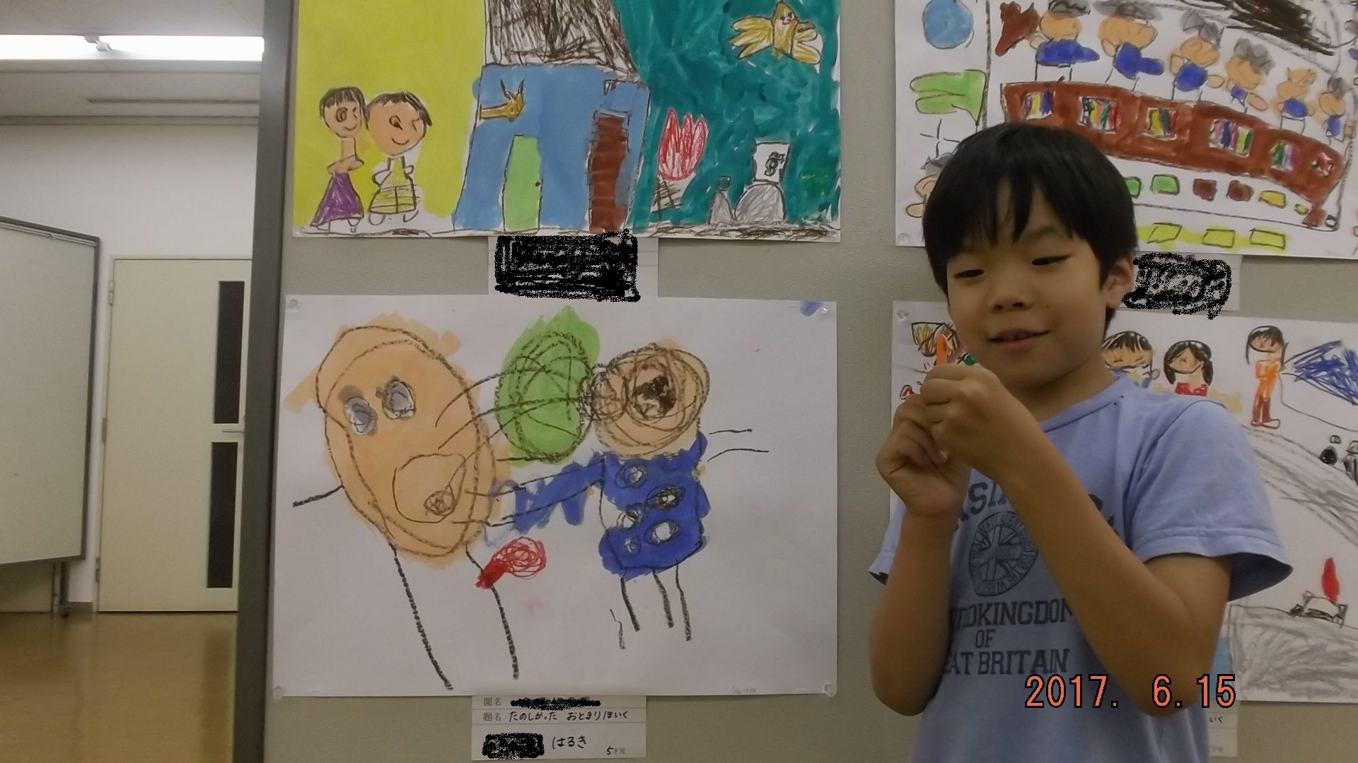 おはようございます。今朝は、17℃ 晴れ予想最高気温30℃となっています。朝晩は肌寒いですが、日中は暑いですね。ただ、まだこの時期は、風が吹いているので思ったよりも過ごしやすいです。・・・近くのイベント会場で保育園の展示があると聞いていて行ってみました。ただ、はるくん本人の絵があるかどうかは、不明とのことでしたがありました。テーマはお泊り保育でのことを書いたようです。他力本願のはるくん絵の力は年長さんとしてはさみしいですが本人しっかり覚えていてくれて説明してくれました。虫を捕まえて先生に見せに行ったところを書いたとのことさすがは男の子。虫が大好き蝶や蟻など見つけては興味津々とみています。今日はお休みなので何をするのでしょうね。では、今日も一日がんばりましょう。