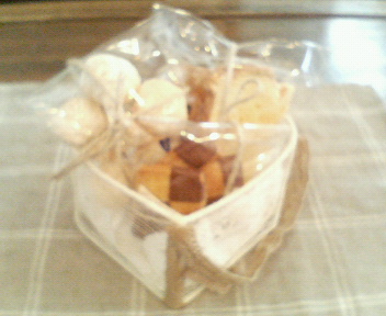 大人気の「YAMADAYA」の焼き菓子。かわいいかごに詰め合わせて、贈り物にいかがですか?おいしく召し上がってもらったあとも、かわいいかごがなんだかうれしい・・・。そんなセットです。¥600~、ご希望に応じてご用意いたします。
