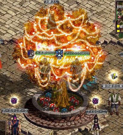 みなさん あけましておめでとうございます!!!2013年今年もよろしくお願いします*o_ _)oみなさまにおかれましても 幸多き年でありますよう 心よりお祈り申し上げます*o_ _)oさてさて 年末12月23日に霊術師が転生しました!やっと3次転生だっ(`・∀・´) 650レベルくらいになったら GV出れるかなぁ。。。ソロが出来ない ステ振りにしてしまったので ゆっくりレベ上げしますヽ(;▽;)ノそしてそして クリスマスイブもクリスマスも仕事でした。。。毎年恒例の 噴水がクリスマスツリーに!!!せっかくなので ソロで記念撮影☆*::*:☆MerryXmas☆:*::*☆わーい。。。このツリーは ギルドダンジョンB6のツリーですが♪毎年恒例の骸骨サンタも登場してたな骸骨サンタにもソロで突撃~('A`)いえ~い。。。こんな感じで 31日まで仕事の年末でした。。。(*´Д`)=з新年も3日から仕事です はい。。。今年も日本国民の義務として 働きますよおっおおおおぉぉぉぉ(|| ゚Д゚)そして 休日には人生を楽しみます♪今年も良い年でありますように(´▽`)