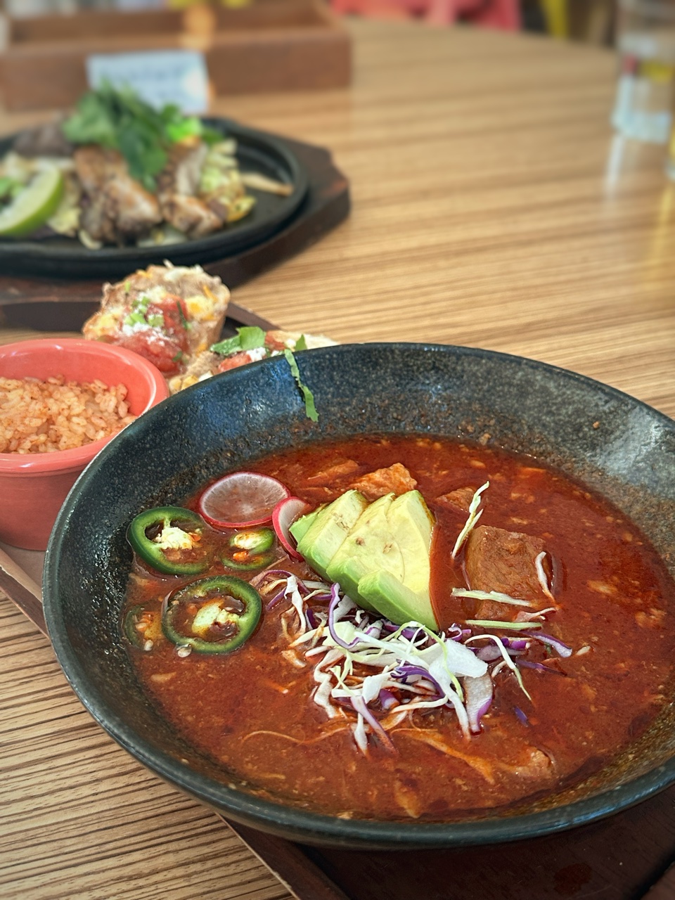 今週のWeekly Mexican Lunch!去年の話ですが12月はテーマが"Traditionalだったかな …12月は1度しか伺えなかったのなんだか風邪はひくし、咳すごいしが続いて… …最終週にお伺いできたのですがこの週はPozole con CerdoPozoleは豚肉の煮込み… Cerdoは豚肉豚豚煮込みってかしら??最後のランチってことでビールを飲みつつ牛ハラミとチキンのファヒータとシェアすることにスムージーはアップル&シナモンこれまたデザート代わりにいたしますスープはいつもながらピリ辛具合が刺激的毎回同じようで同じじゃない野菜ザクザク系この日はチキン多目でなんだかリッチピリッと辛く、ちょびっと酸っぱい大好き味ホロホロになるまで煮込んだ豚肩ロース、アボカド玉ねぎ、コリアンダーも入る具沢山スープメキシカンっぽく、辛みがしっかりとあってピリピリと舌に刺激がくるのが心地よいスープメキシカンライスが添えられているので途中でスープに投入、これがまたリゾットとして最高にうまい組み合わせやわらかめのバゲットにひよこ豆のペーストチーズをのせて焼いたブルスケッタのようなものはメキシカンではモジェーテスというそうこれがまた癖になりそうなお味でスープにディップしてもたいそう美味牛ハラミとチキンのミックスファヒータははスキレットで熱々のまま登場サルサが別添えになっているのですがドバっと思いっきりかけてしまい焼いた玉ねぎ、パプリカ、キャベツと和えパクチーも和えてしまいお肉と一緒にガブリ安定のおいしい焼肉 …そしてメキシカンですから別添えのトルティーヤで巻き巻きするも好しそのまま炒め物として食べるのも好しで…ビールのアテニはそのままがおススメだけど熱い、辛い、旨いと3拍子揃ったファヒータとシチュ前世はメキシカンだったのかしらと思うくらいこの手の味付けが大好物のワタクシこの日も思いっきりいただき完食でございますこの日で2024年はお終いまた2025年もお世話になっちゃうんだろうなぁInstagram はこちら(^^♪MUCHO MODERN MEXICANO(ムーチョ モダン メキシカーノ) MAP東京都千代田区丸の内2-7-3 東京ビルTOKIA 2F☆★ブログランキングに参加しています★☆一日一回ポチッと応援クリックよろしくお願いしますにほんブログ村こちらもよろしくねメッセージはこちらからお願いします